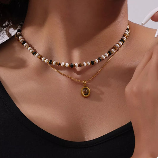 18K Gold-Plated Titanium Steel Crystal Bead Pendant Necklace
