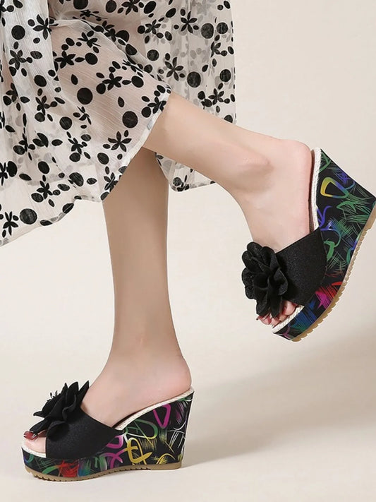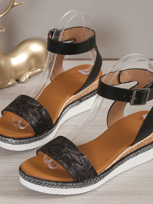 Rainbow Metallic Block Heel Ankle Strap Sandals
