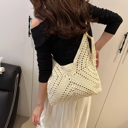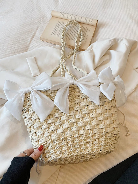Woven Straw Summer Shoulder Bag with Leather Handles