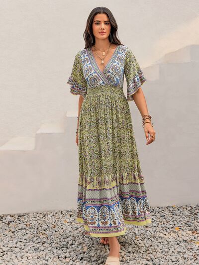 Ruched Off Shoulder Short Sleeve Midi Dress