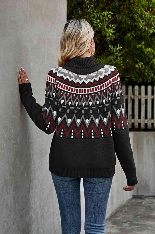 Turtleneck Long Sleeve Slit Fleece Sweatshirt