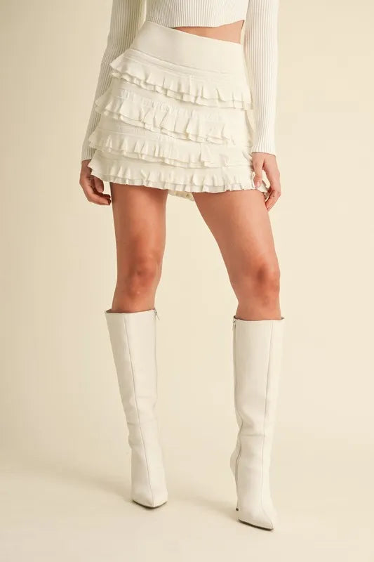 MABLE Ruffled Detail High Waist Knit Mini Skirt