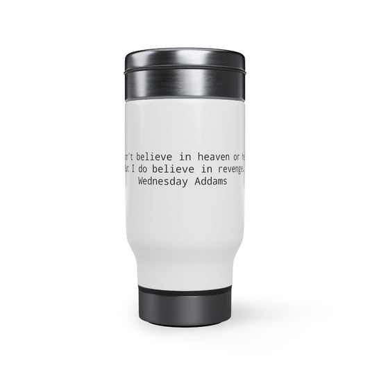 Wednesday Addams Quote -revenge- Stainless Steel Travel Mug with Handle, 14oz