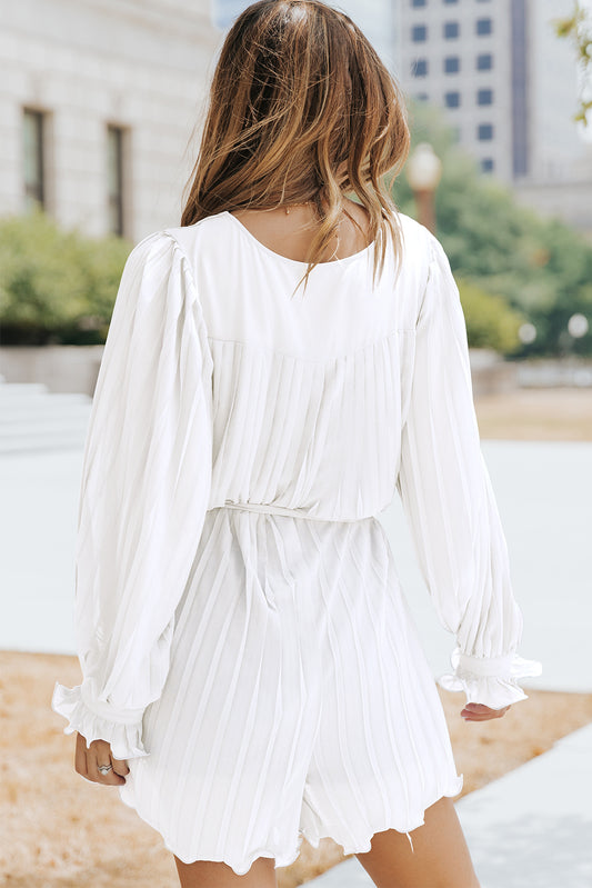 Belted Puff Sleeve V-Neck Wide Leg Jumpsuit