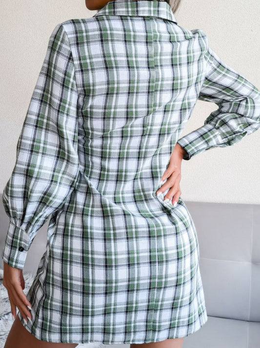 Satin Drop Shoulder Johnny Collar Shirt Dress