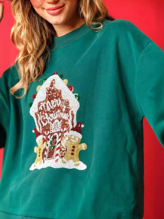 Merry Letter Christmas Sequined Twisted Ribbed Sweatshirt