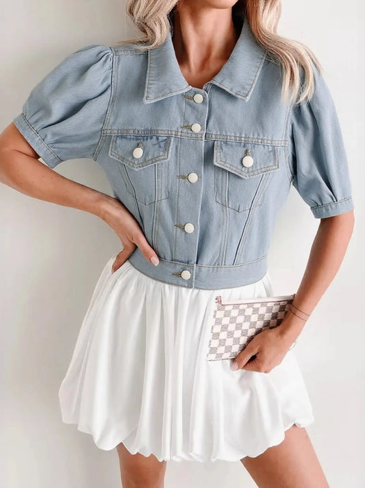 Full Size Button Front Long Sleeve Denim Jacket Plus Size