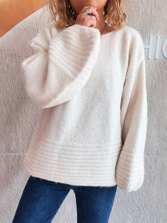 Striped Contrast Ribbed Trim Drop Shoulder Sweatshirt