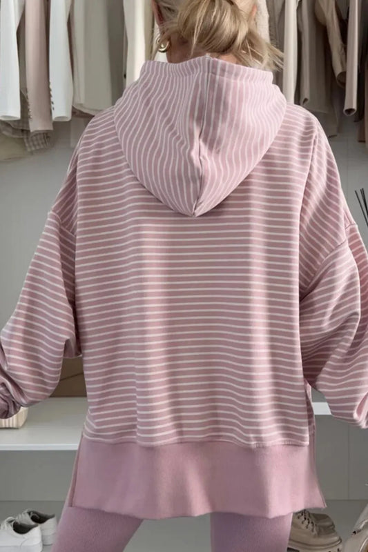 Plus Size Contrast Trim Drawstring Long Sleeve Mini Dress