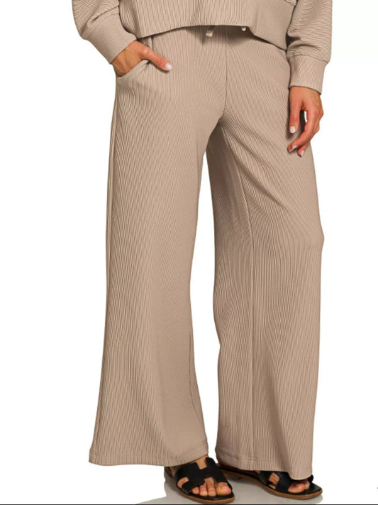 Zenana Ribbed Round Neck Pullover and Drawstring Pants Set