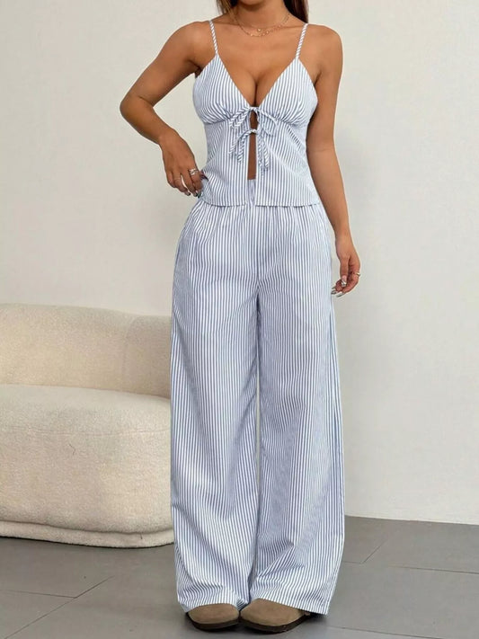 Striped Detail Crewneck Top and Elastic Sweatpants 2pcs Set