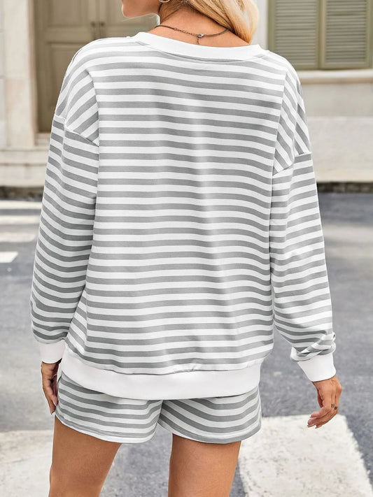 Contrast Collared Neck Top and Drawstring Mini Skirt Set