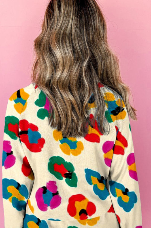 Flower Pattern Long Sleeve Sweater and Drawstring Shorts Set
