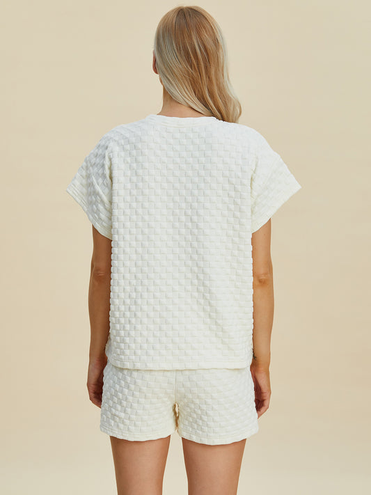 Double Take Full Size Texture T-Shirt and Shorts Set
