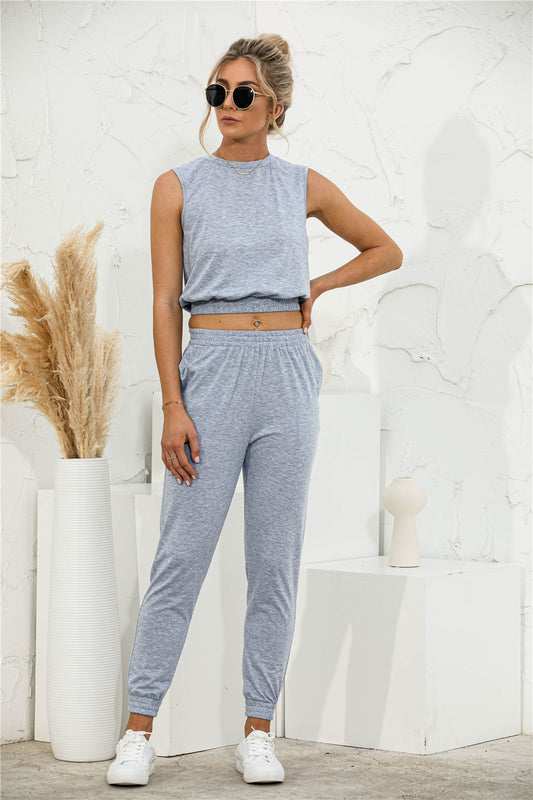Padded Shoulder Top and Joggers Lounge Set