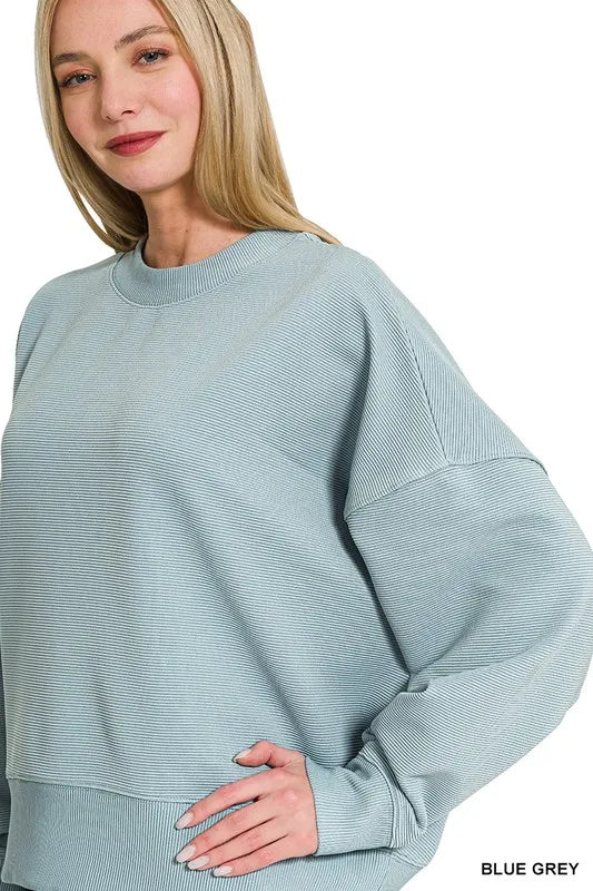 Zenana Ribbed Balloon Sleeve Sweatshirt