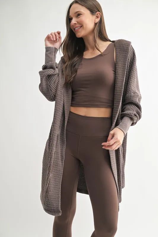 MONO B Chunky Waffle Mineral Wash Hooded Open Cardigan