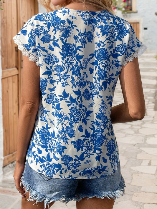 Bow Back Floral Print Ruffle Sleeve Blouse