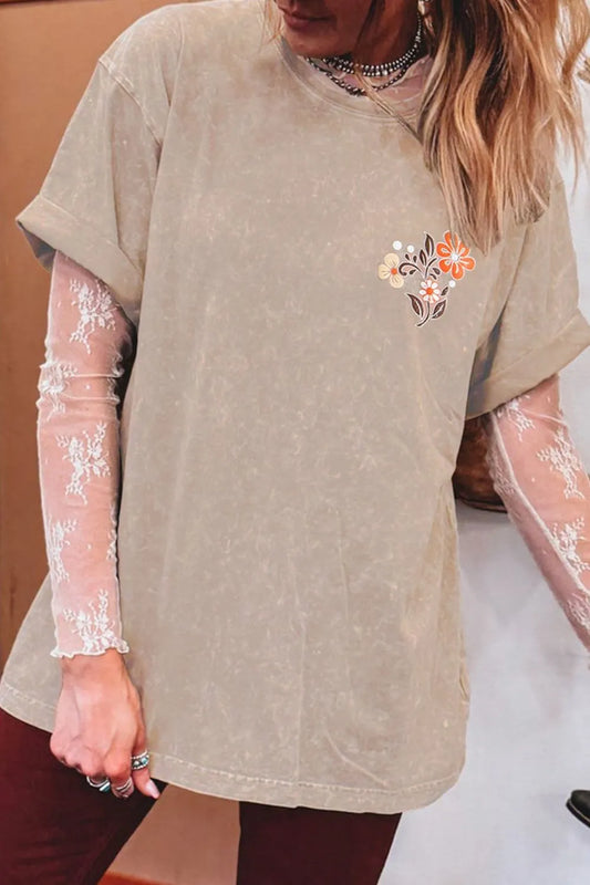 Mineral Wash Floral Steer Head Printed Back Western Fashion Tee