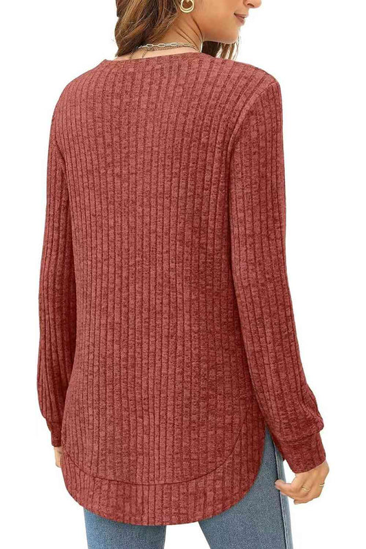 Ribbed Round Neck Long Sleeve T-Shirt