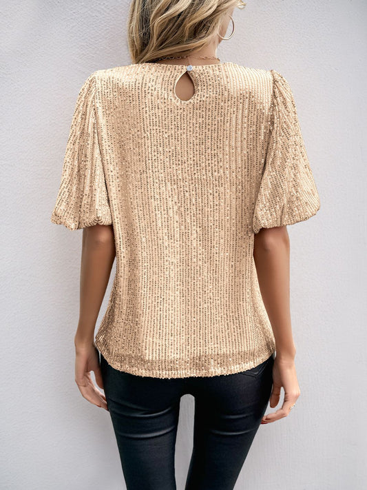 Sold outRuched Puff Sleeve Crew Neck T-Shirt