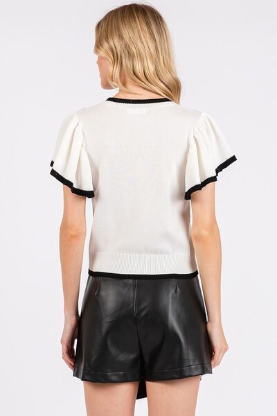 Mittoshop Contrast Trim Ruffled Cap Sleeve Knit Top