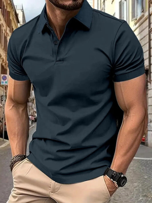 Men's Full Size Button Detail Short Sleeve Polo Plus Size