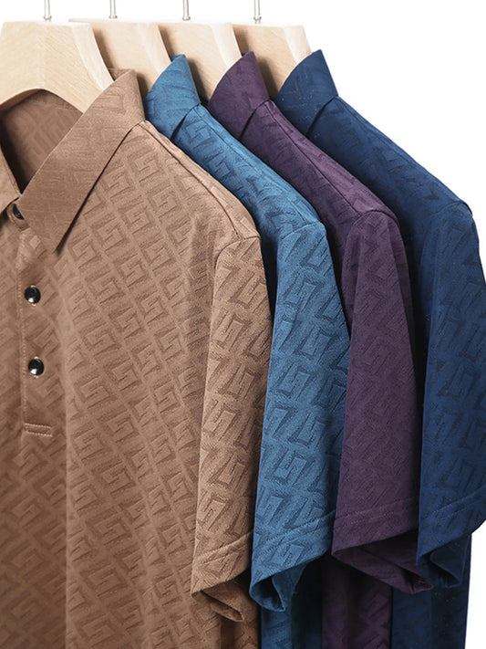 Men's Plus Size Textured Short Sleeve Casual Polo Shirt