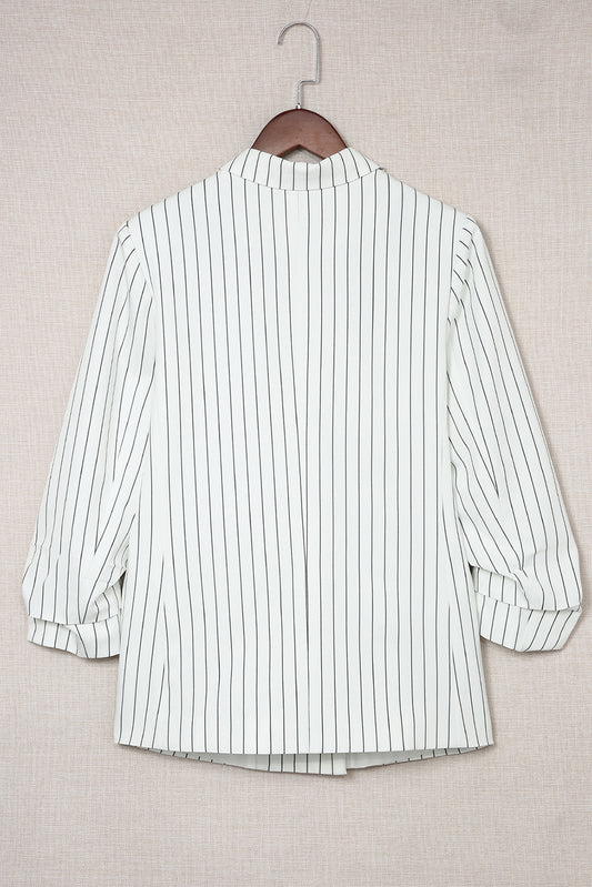 Striped Double-Breasted Long Sleeve Blazer