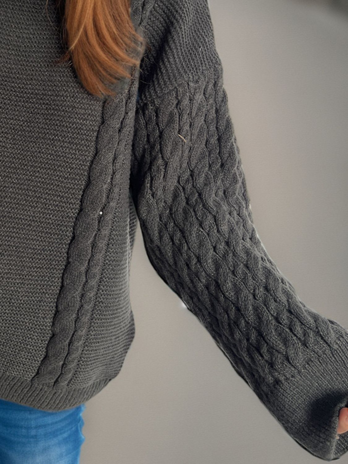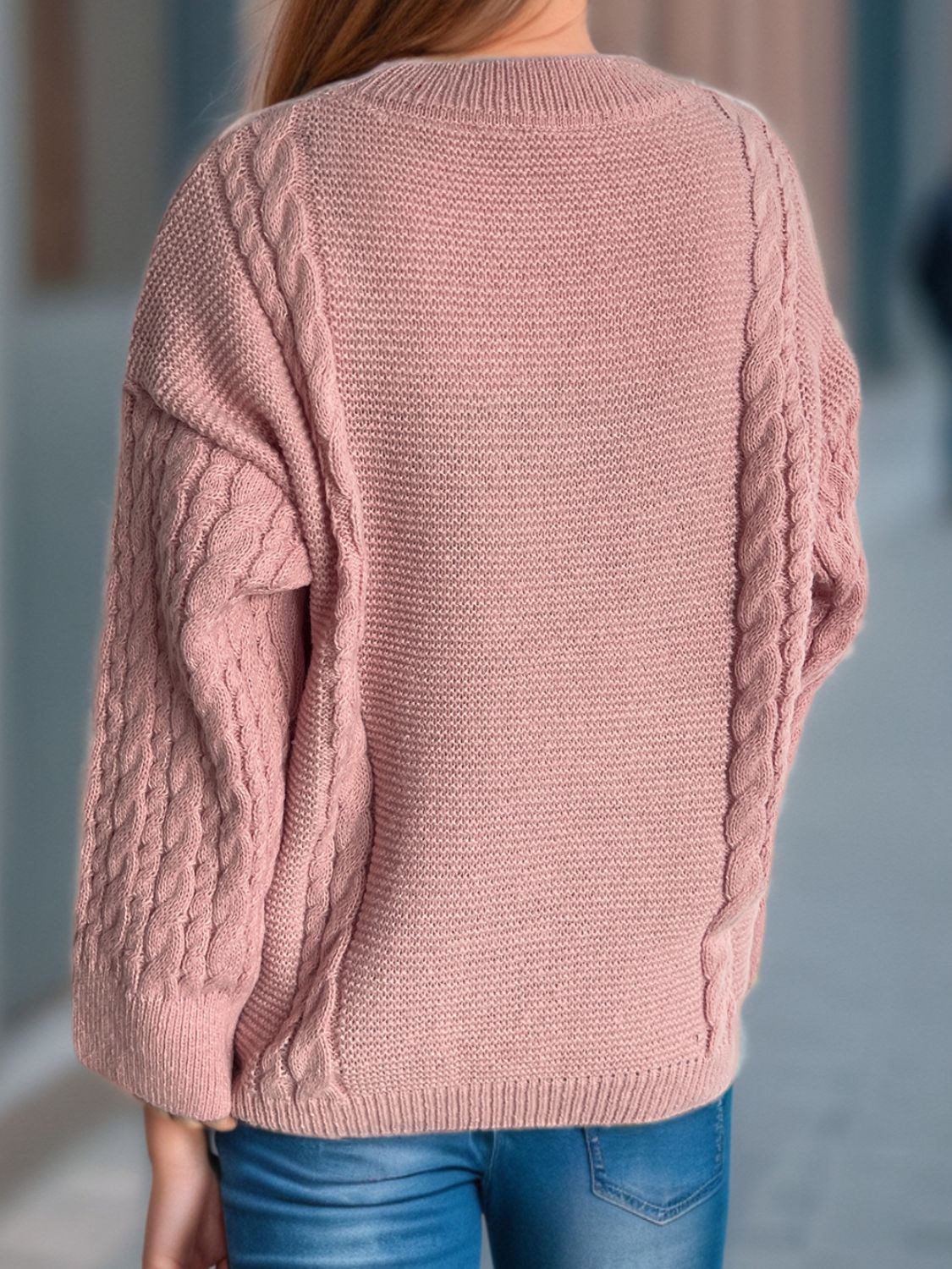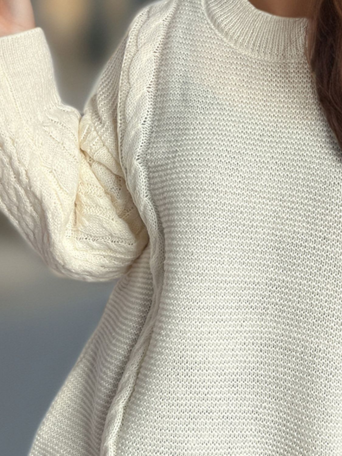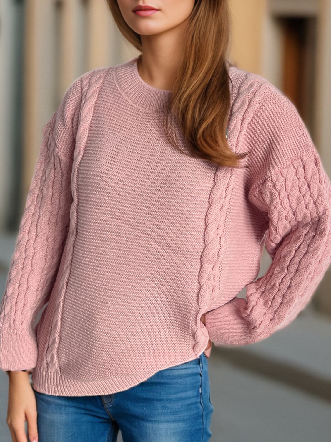 Cable-Knit Round Neck Long Sleeve Sweater