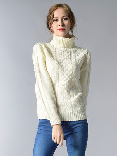 Cable-Knit Turtleneck Pullover Sweater