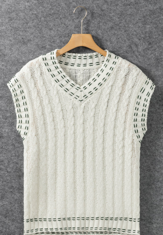 Cable-Knit V-Neck Sweater Vest