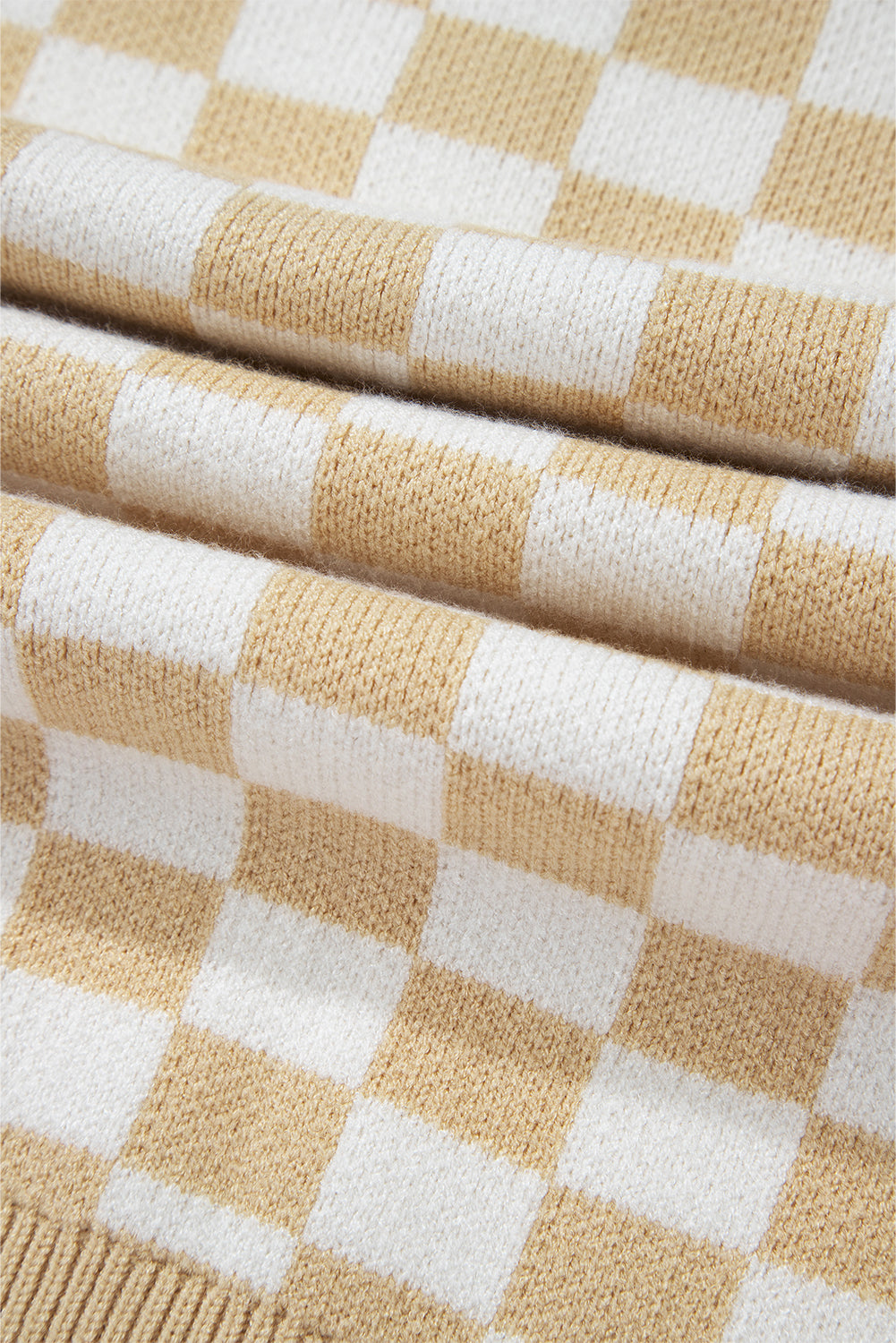 Checkered Collared Neck Long Sleeve Sweater