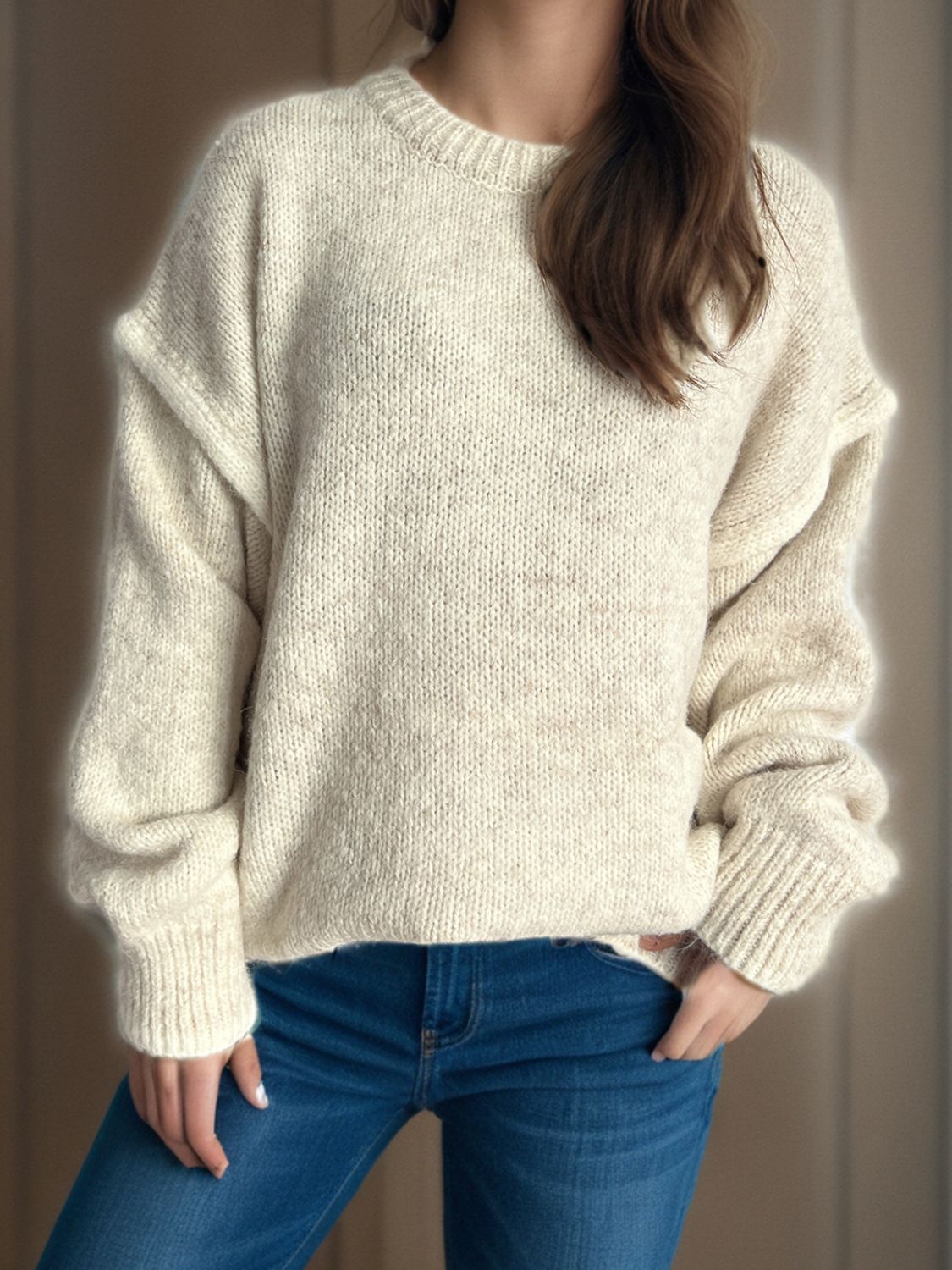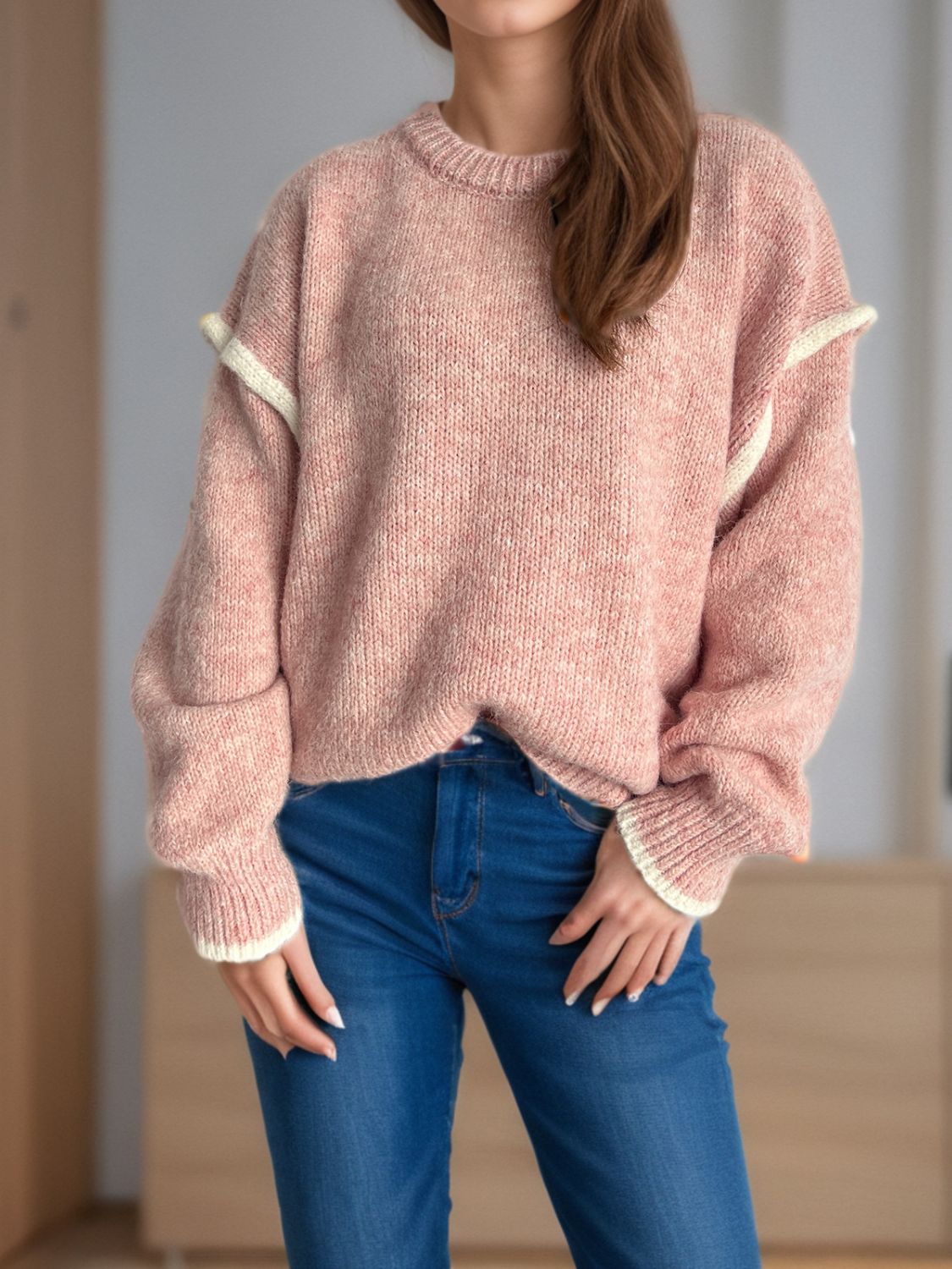 Contrast Trim Round Neck Dropped Shoulder Sweater