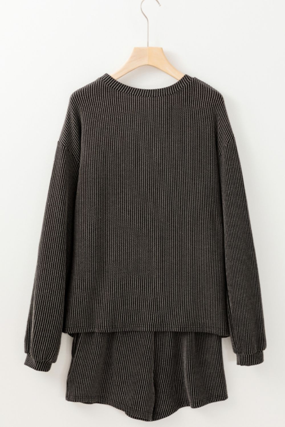 Corded Checkerboard Baseball Graphic Long Sleeve Top and Shorts Set