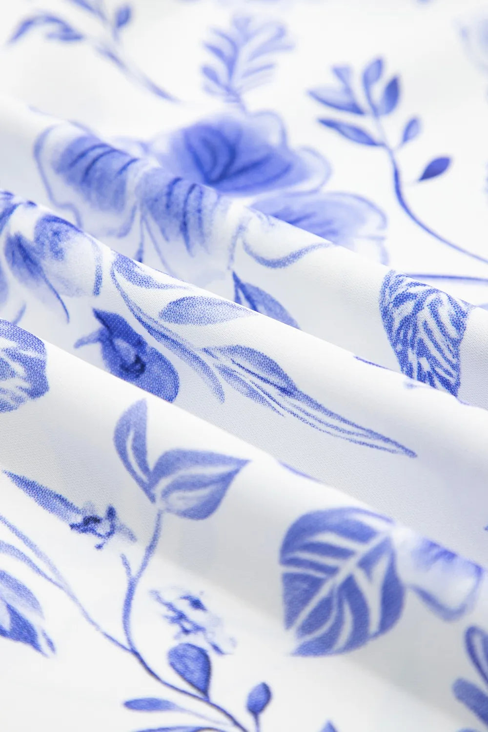 Floral Print Ricrac Trim Short Sleeve Blouse
