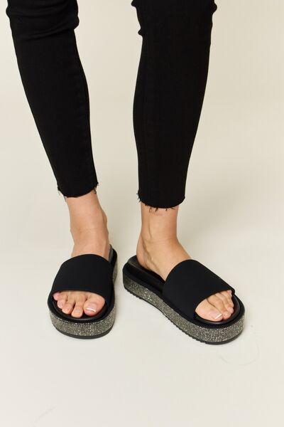 Enhance your summer style with these dazzling Open Toe Rhinestone Platform Sandals. The open-toe design and rhinestone embellishments add a touch of glamour to any outfit. These platform sandals provide both chic style and comfortable wear, making them perfect for a variety of occasions. Step out in confidence and elegance with these stunning Open Toe Rhinestone Platform Sandals that will elevate your look. Whether you're heading to a beach party or a night out, these sandals are a fashionable choice. Make a statement with these eye-catching sandals that will surely turn heads and showcase your unique style.
