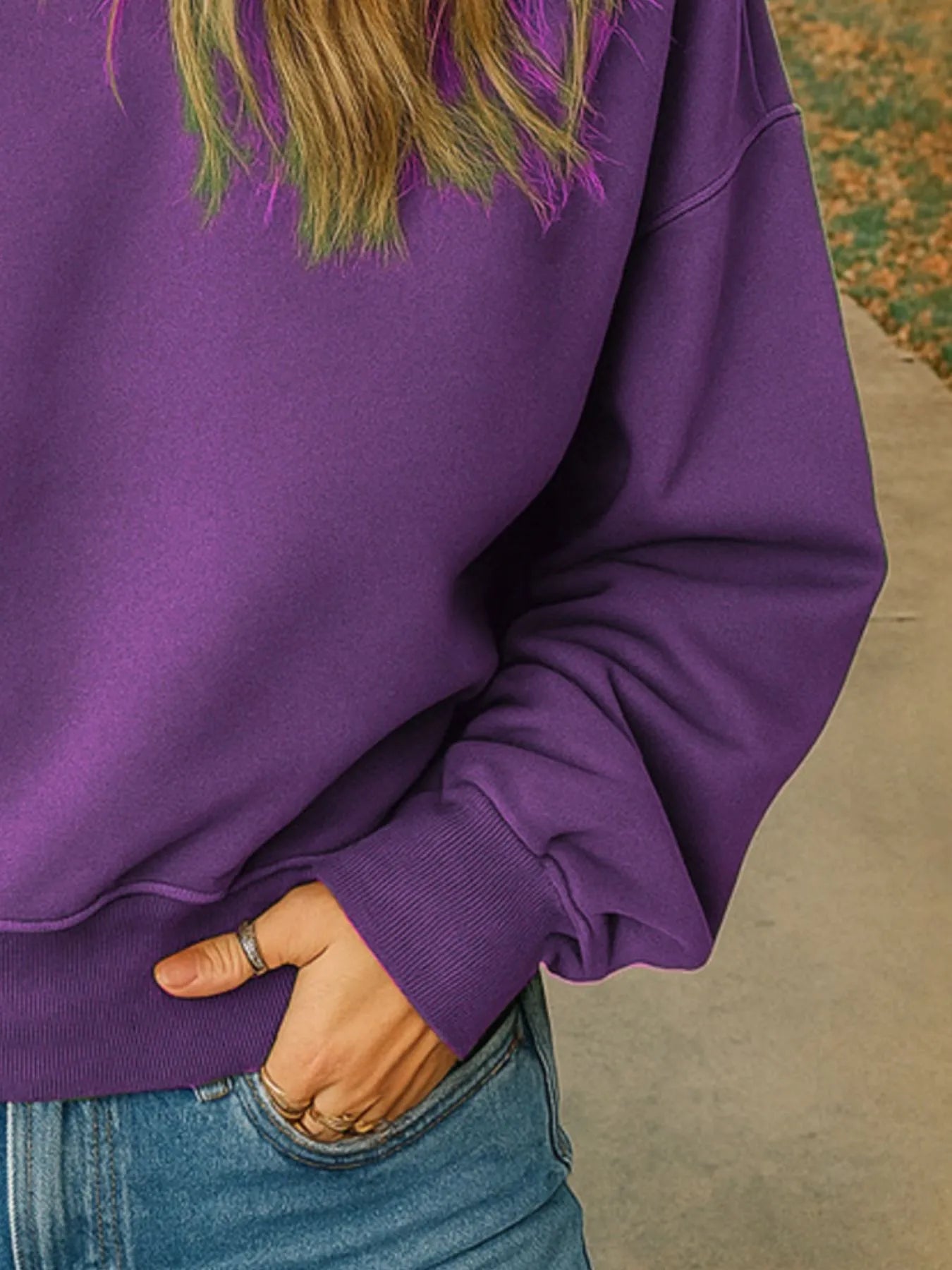 Full Size Basic style Round Neck Cropped Sweatshirt Plus Size