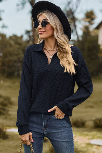 Johnny Collar Dropped Shoulder Blouse