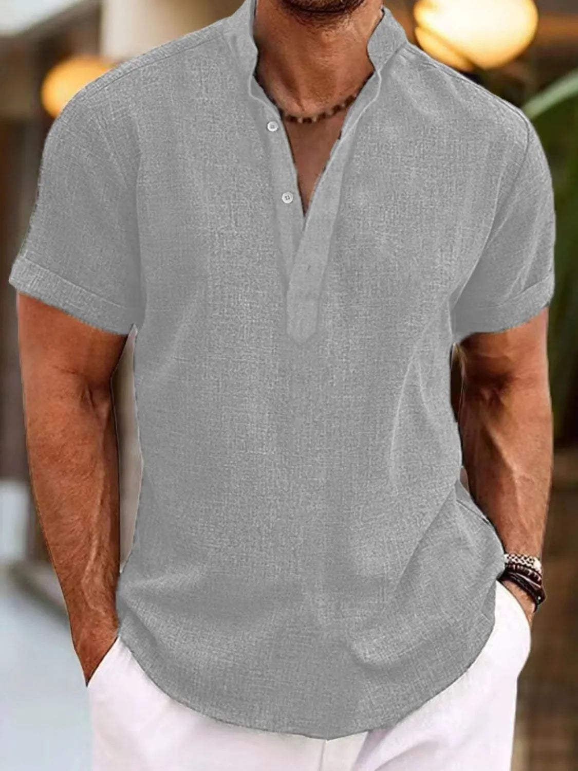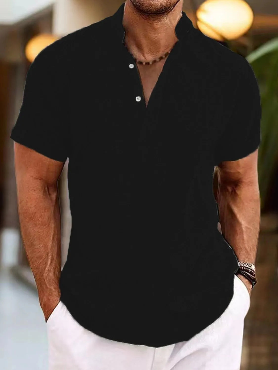 Men's Full Size Button Detail Short Sleeve Polo Plus Size