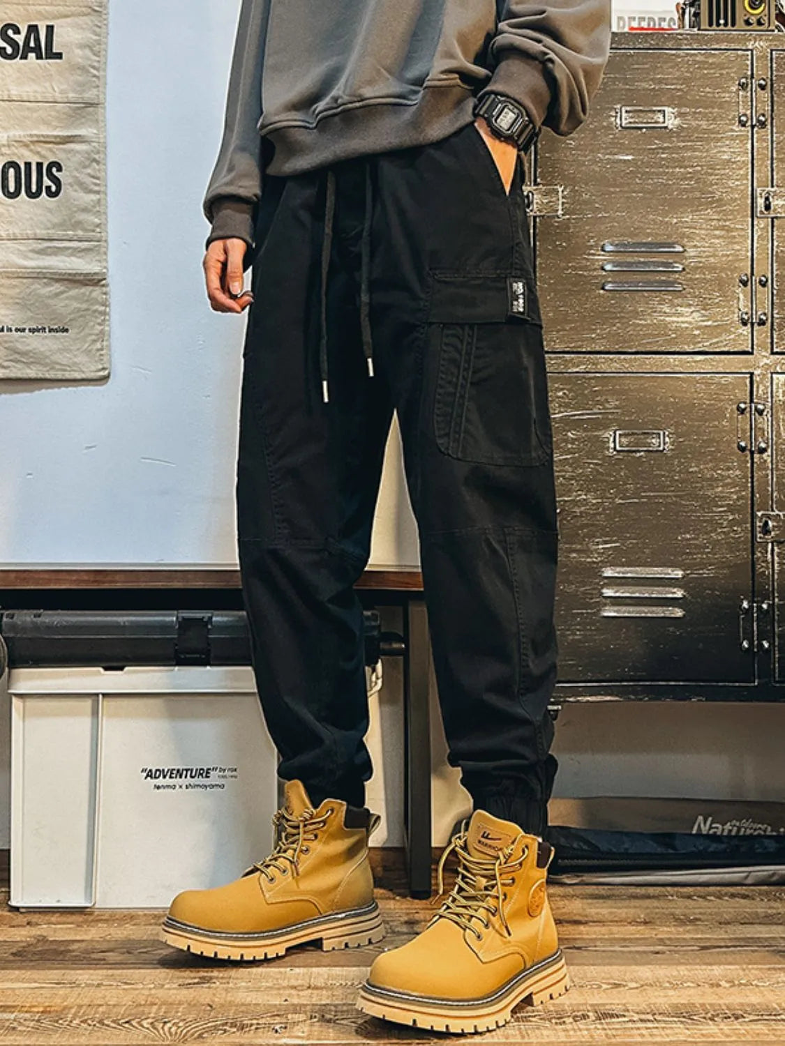 Men's Plus Size Drawstring Pants with Cargo Pockes