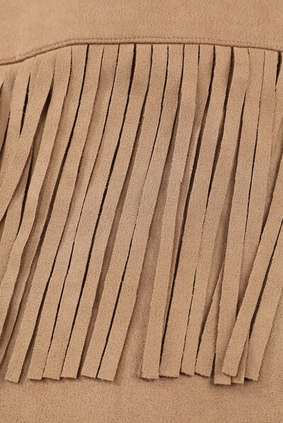 Plus Size Fringe Trim Snap Down Long Sleeve Shacket