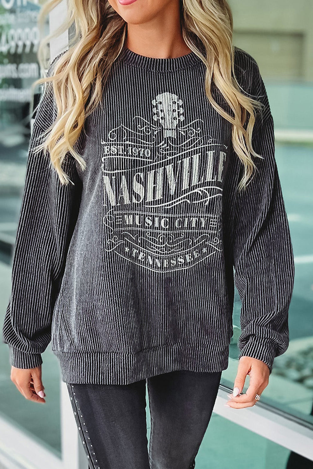 Ribbed Round Neck Long Sleeve Graphic Sweatshirt