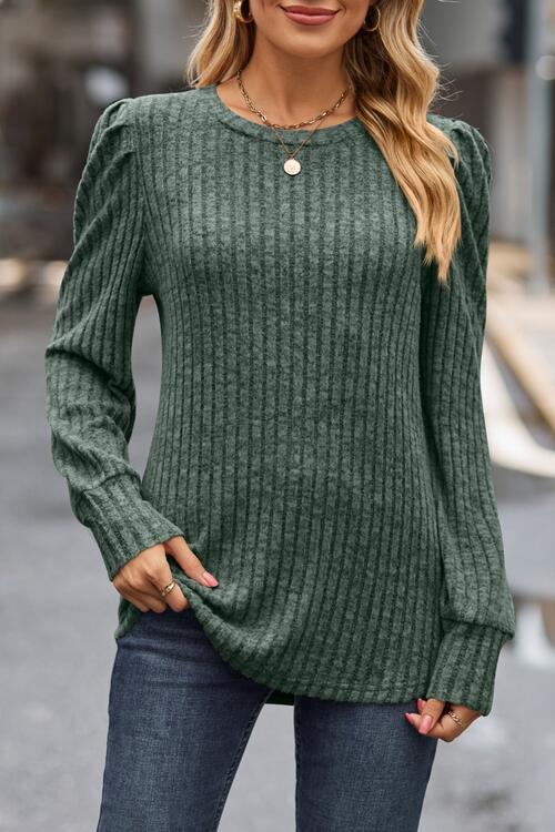 Ribbed Round Neck Long Sleeve Knit Top