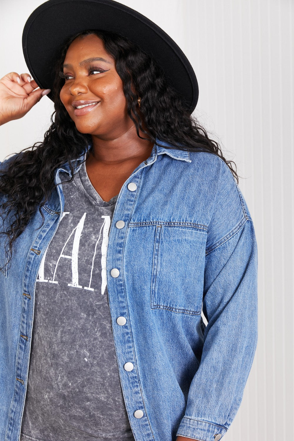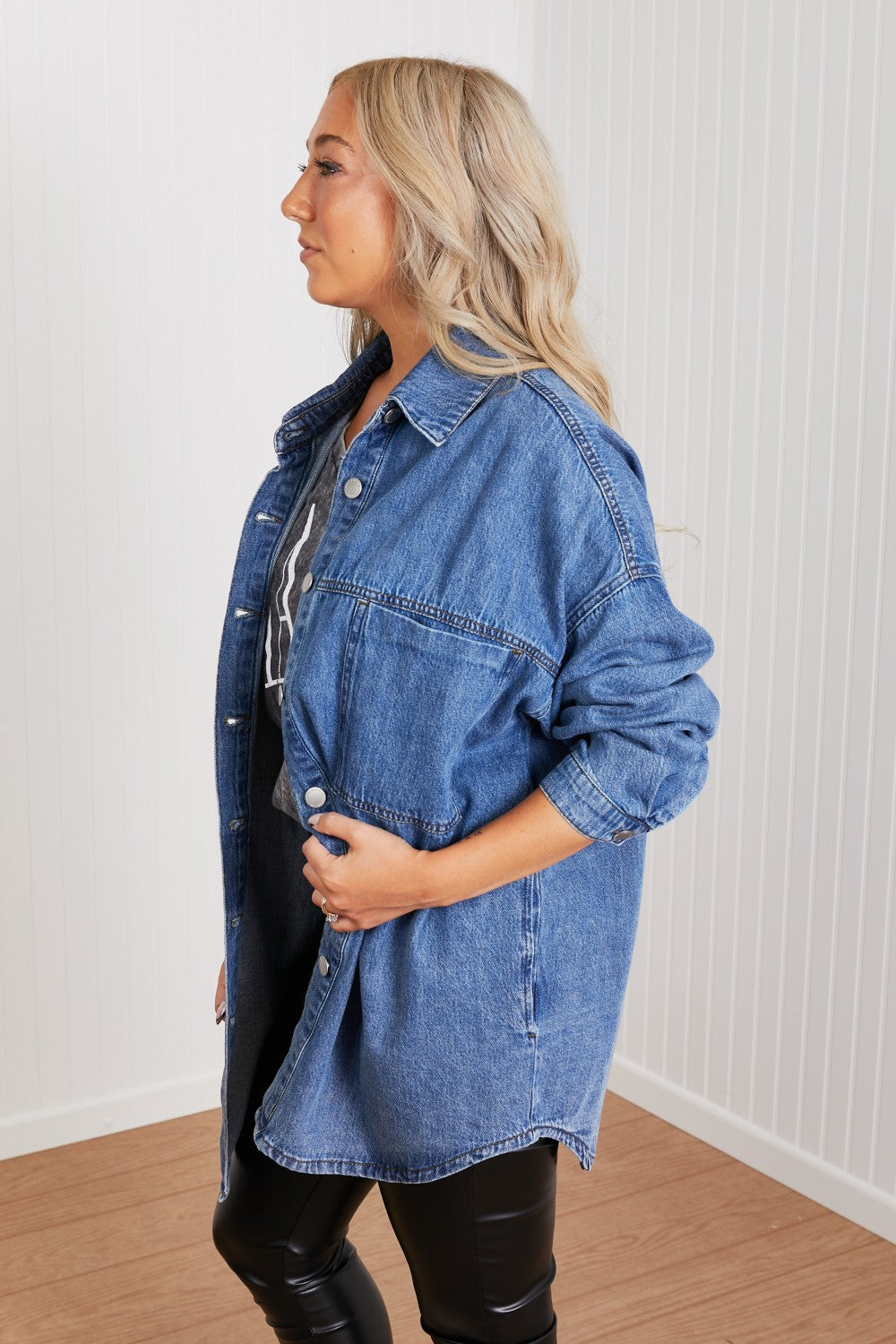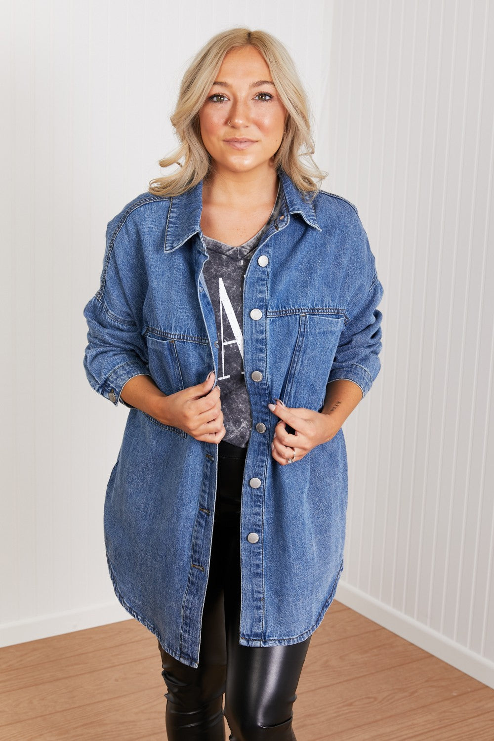 Love the denim shacket with a curved hem? You better hurry and grab this one before it's too late! Made with sturdy woven denim, this button-down jacket will get so many compliments!
