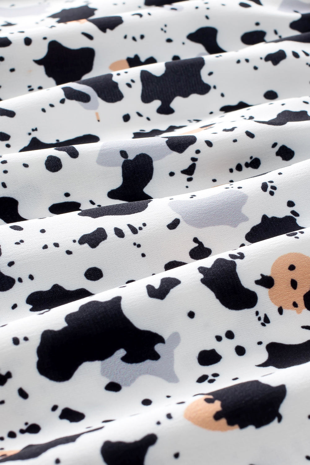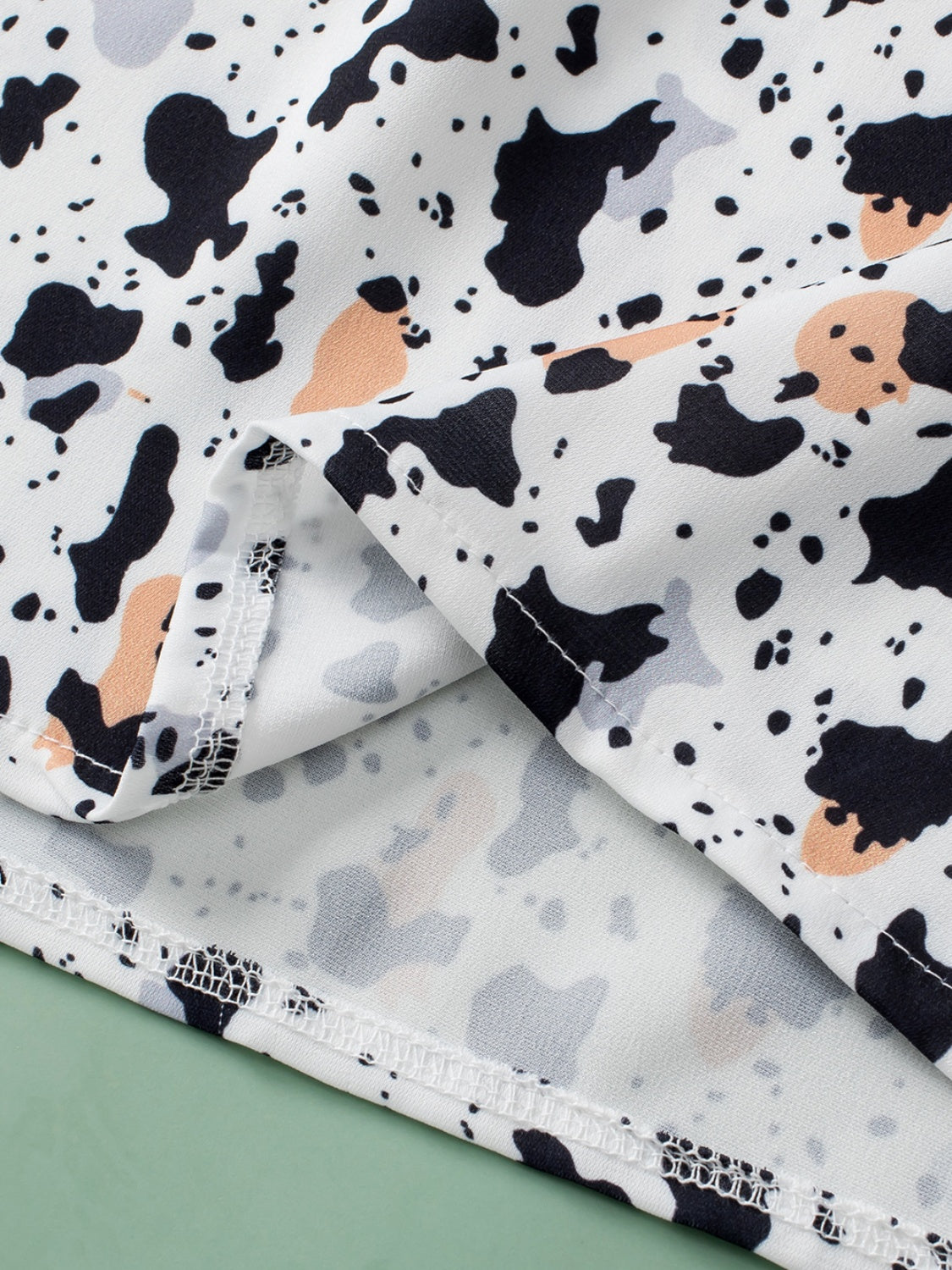 Ruffled Printed Mock Neck Cap Sleeve Blouse