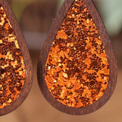 Sequin Wood Teardrop Earrings