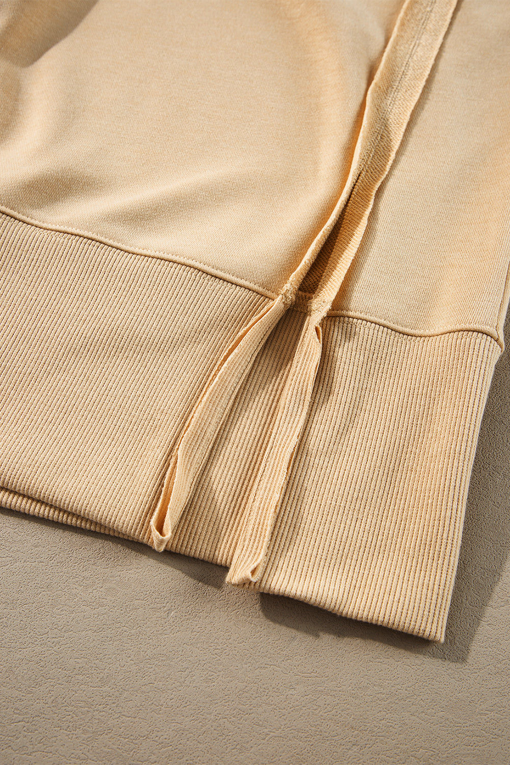Side Slit Round Neck Long Sleeve Sweatshirt