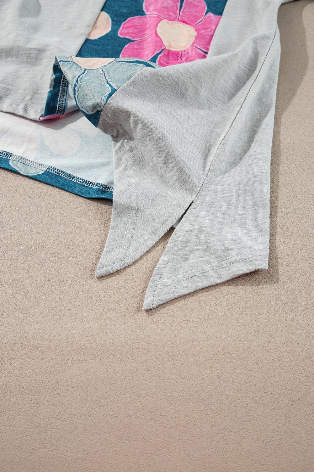 Slit Floral V-Neck Three-Quarter Sleeve Blouse