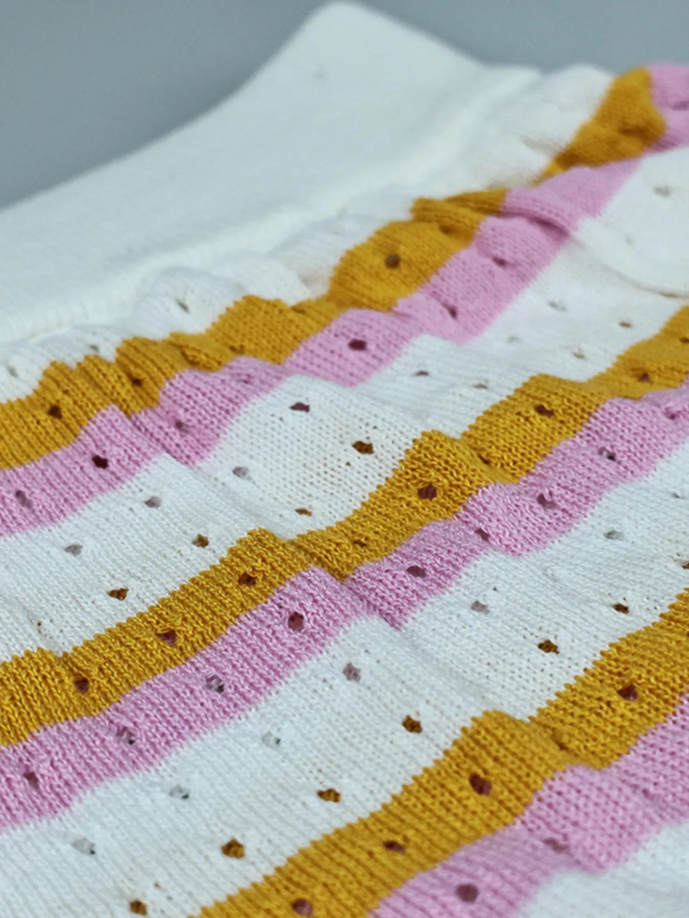 Striped Eyelet Button Up Shirt and Shorts Set